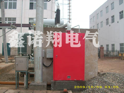 當(dāng)變壓器內(nèi)部發(fā)生故障,油箱內(nèi)部壓力急劇增加,引起氣體繼電器跳閘動作,若變壓器的溫度的繼續(xù)升高,探測器達(dá)到動作溫度,其感溫元件熔斷,觸頭接通,中間繼電器線圈帶電,電磁機(jī)構(gòu)動作,把快速排油閥打開,開始排出高溫油層。在中間繼電器整定過后,常開觸頭接通,常開觸點(diǎn)閉合,開啟閥把氮?dú)馄看蜷_,氮?dú)馔ㄟ^減壓閥、開啟閥、注氮管路進(jìn)入油箱底部,迫使油箱內(nèi)部變壓器油循環(huán),使油箱下部較低溫度的油和頂層高溫油混合,消除熱油層,并使表層油溫度降到閃點(diǎn)之下,油箱內(nèi)部火焰自動熄滅。 斷流閥的作用是預(yù)防儲油柜中的油澆到初燃的火上,加劇火勢。 2、技術(shù)數(shù)據(jù): (1)氮?dú)馄咳莘e:0.04m3、0.05m3、0.063 m3 (2)氮?dú)馄績?nèi)氮?dú)獾霉Q壓力:15+ 0.5Mpa(20℃) (3)內(nèi)部排油管路直徑:φ100mm;φ150mm (5)滅火箱重量:230~240kg (6)滅火箱控制電路電壓:220±5%VDC,各次諧波分量值之浮值和小于直流量的1% (7)探測器的動作溫度為145±10℃ 工作環(huán)境溫度:-5℃~55℃,海拔高度≤2000米 有效注氮時間≥5min 3、滅火箱的外形1000 mm X370 mm X190 mm